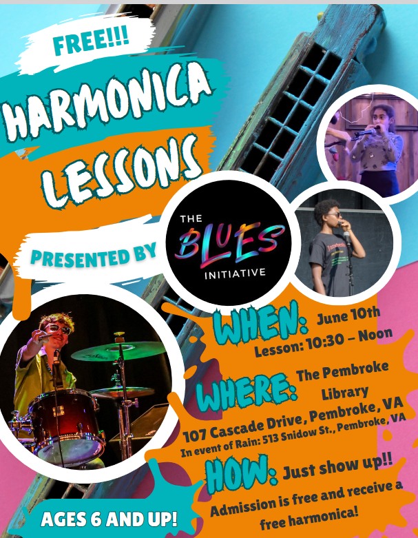 The Pembroke Women's Club along with the New River Blues Society presents Free Harmonica Lessons and Blues Music Mini Concert on Monday, June 10, 2024 at the Pembroke Library.