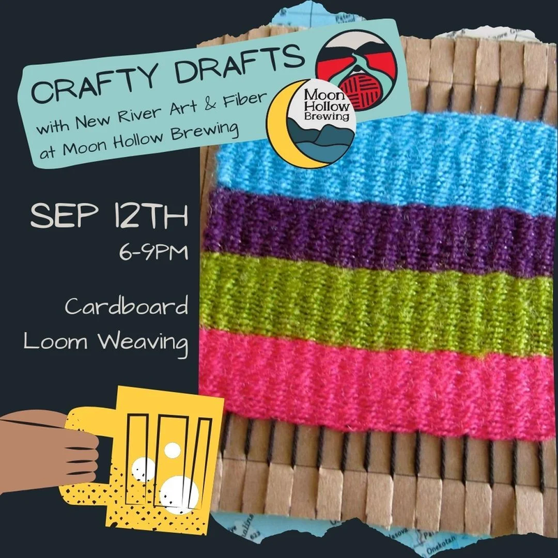 Moon Hollow Brewing presents Crafty Drafts featuring the craft "Cardboard Loom Weaving" with New River Art & Fiber on Thursday, September 12, 2024.