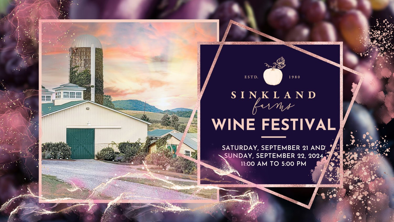Sinkland Farms presents their 2nd Annual Wine Festival on Saturday, September 21, 2024 and Sunday, September 22, 2024 from 11:00 AM to 5:00 PM.