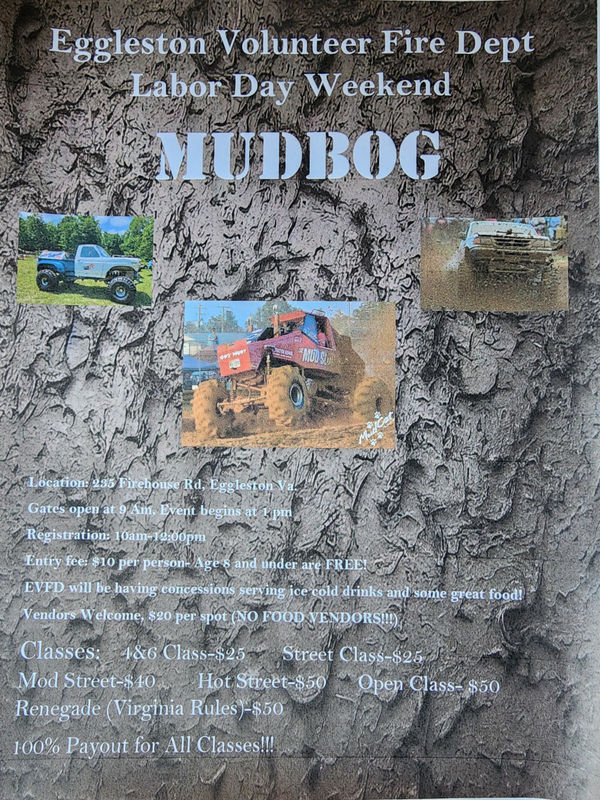 The Eggleston Volunteer Fire Department presents their 2024 Mudbog on Saturday, August 31, 2024.