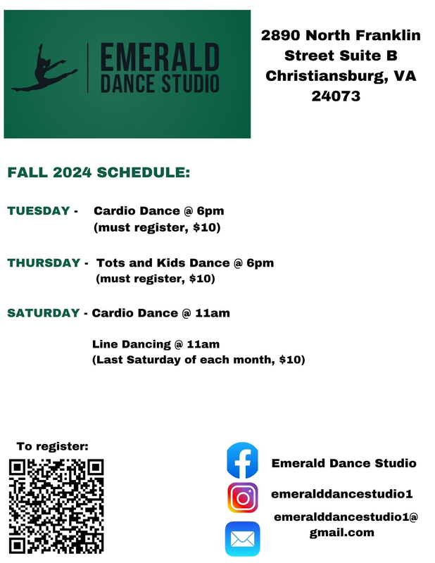 https://www.instagram.com/emeralddancestudio1/ or call 540-391-0667.