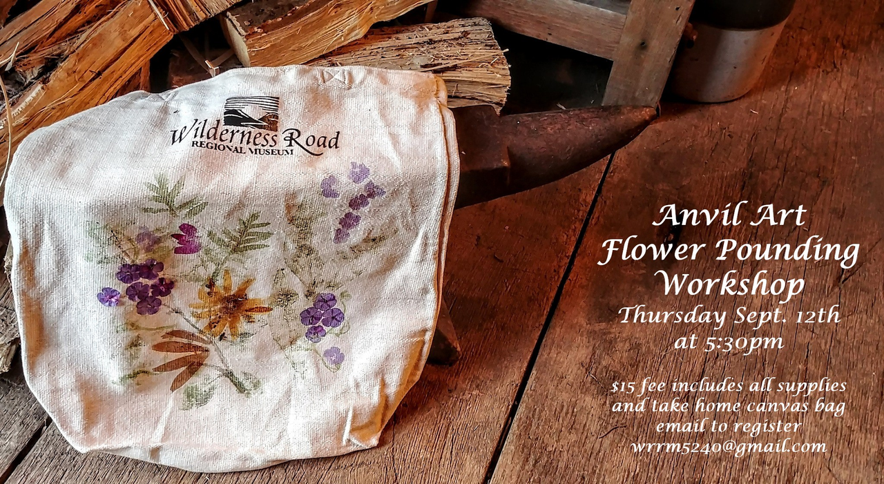 Wilderness Road Regional Museum presents an Anvil Art Flower Pounding Workshop on Thursday, September 12, 2024 inside the 1818 Barn.
