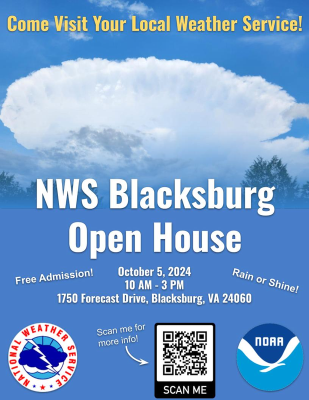 The National Weather Service Office in Blacksburg, VA presents their 2024 Open House on Saturday, October 5, 2024.