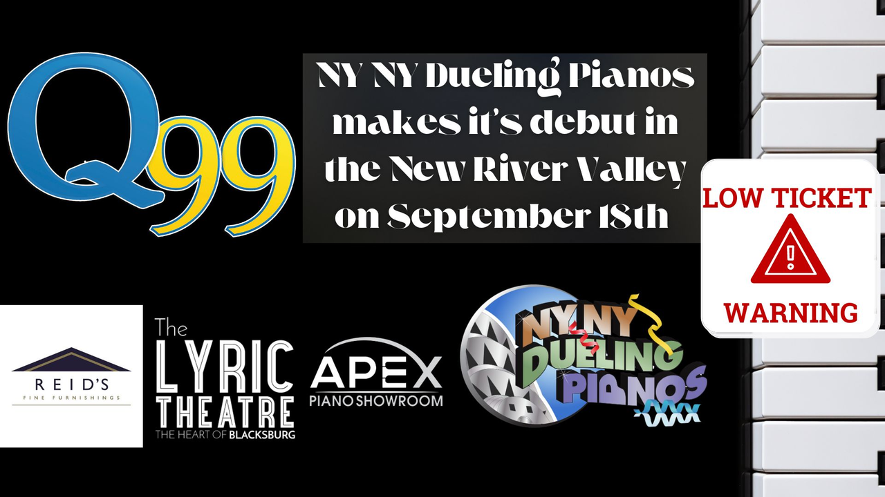 Roanoke radio station Q99 presents New York, NY Dueling Pianos Performance on Wednesday, September 18, 2024 at The Lyric Theatre.