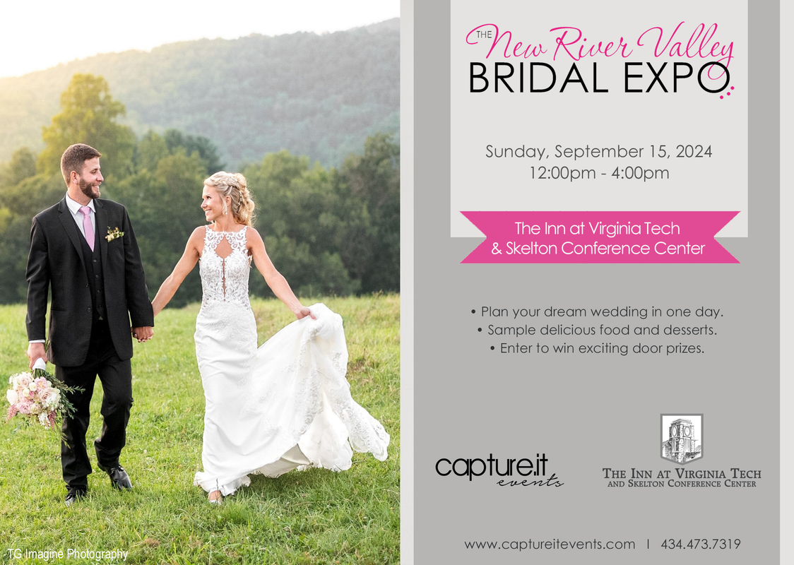 Capture It Events presents The New River Valley Bridal 2024 Fall Expo on Sunday, September 15, 2024 at The Inn at Virginia Tech and Skelton Conference Center.
