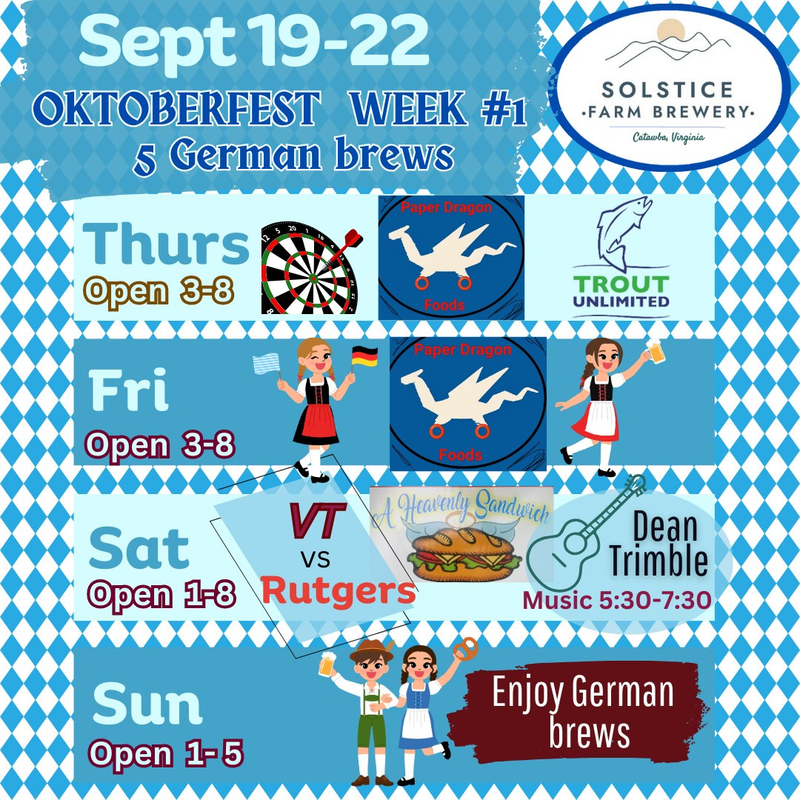 Solstice Farm Brewery presents their Oktoberfest Celebration Opening Weekend on Thursday, September 19, 2024 - Sunday, September 20, 2024.