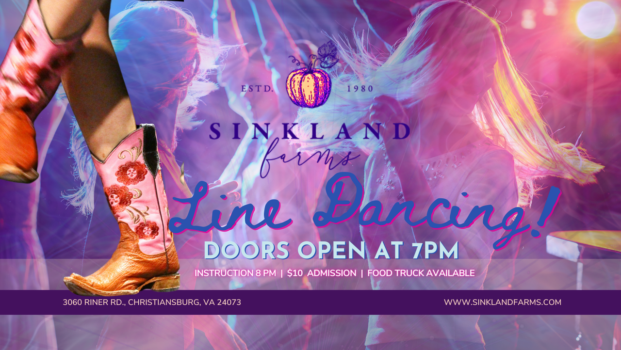 Join Sinkland Farms for a fun-filled night of line dancing! All types of music and all levels of experience welcome.