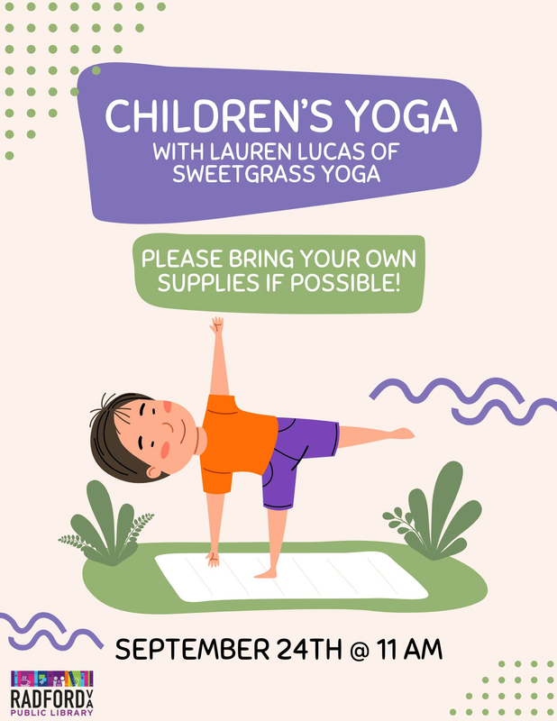 Radford Public Library presents Children's Yoga on Tuesday, September 24, 2024.