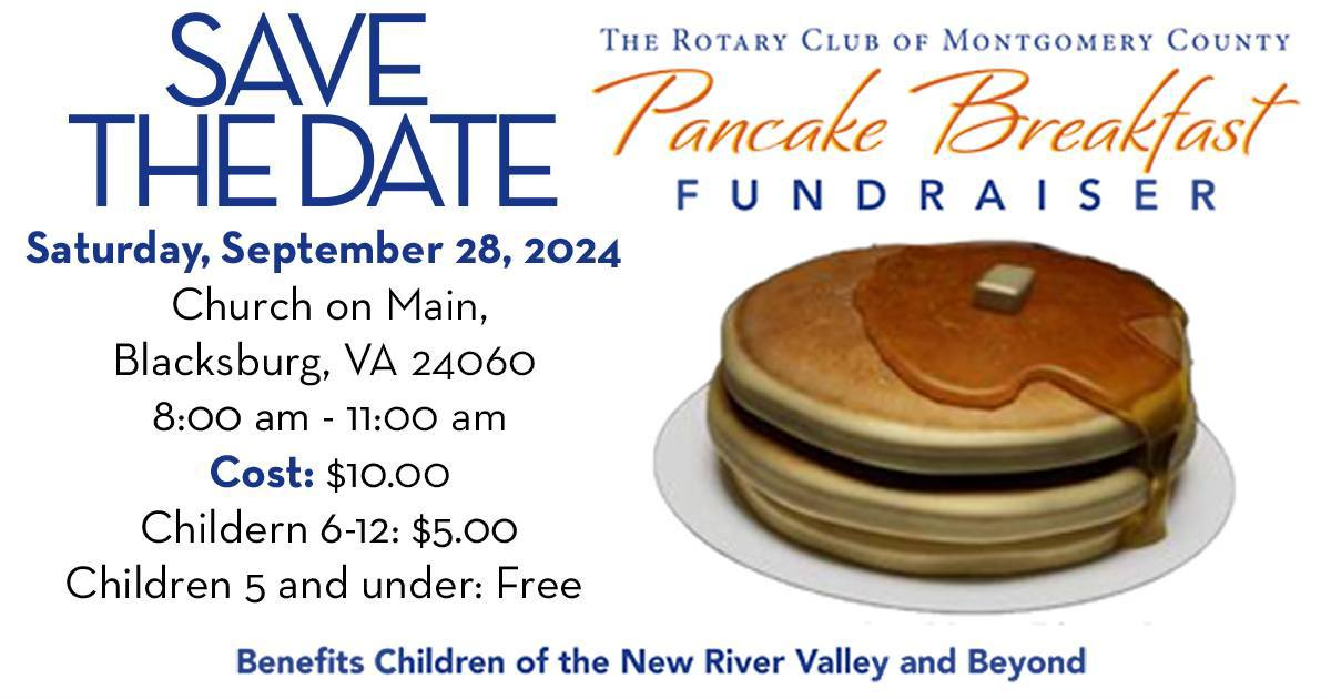 The Rotary Club of Montgomery County presents their 2024 Pancake Breakfast Fundraiser on Saturday, September 28, 2024 at the Church on Main.