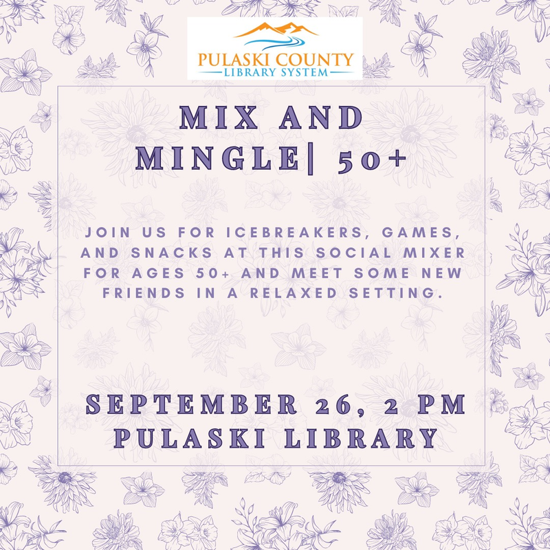 The Pulaski County Library presents a Mix and Mingle for ages 50 & up on Thursday, September 26, 2024.