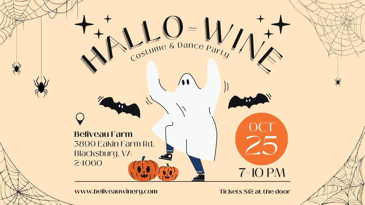 Hallo”Wine” is back at Beliveau Farm! Party with us from 7:00-10:00 PM and celebrate the spookiest time of the year. Wear your favorite costume and compete for prizes in our costume contest. DJ Pat Worley will set the tone for the evening with all of your favorite hits and Halloween classics.