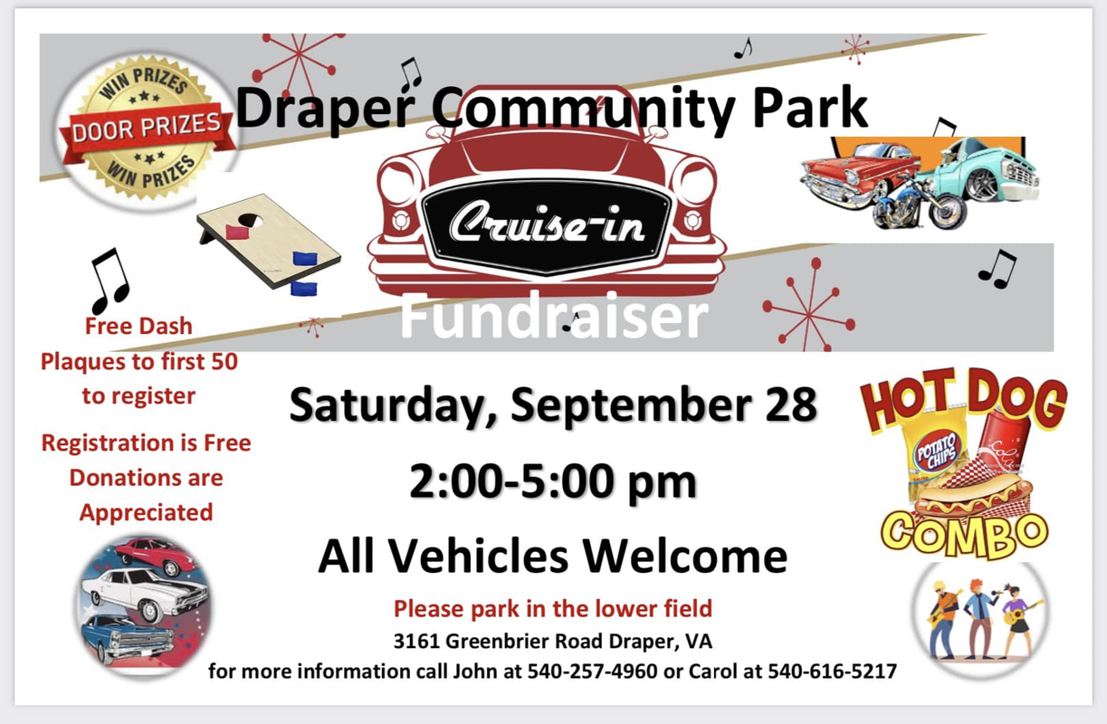 Draper Community Park presents their Cruise-In Fundraiser on Saturday, September 28, 2024.