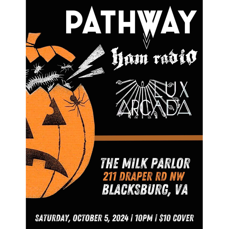 The Milk Parlor presents a Three Band Concert with Pathway, Ham Radio and Lux Arcada on Saturday, October 5, 2024.