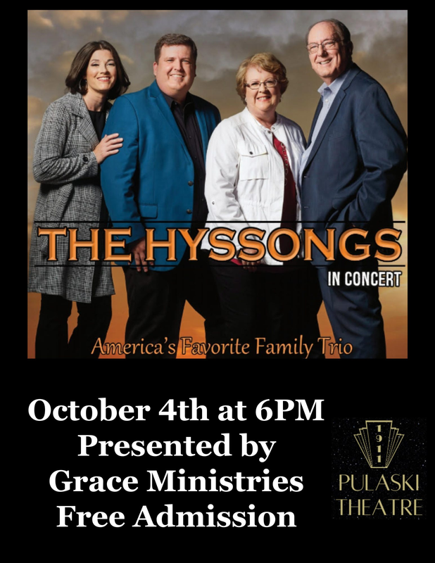 Grace Ministries presents The Hyssongs in concert on Friday, October 4, 2024 at Pulaski Theatre.