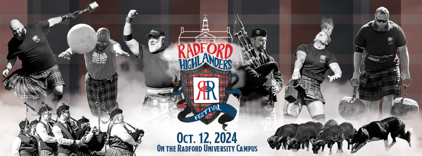 Radford University and the City of Radford present the 27th Radford Highlanders Festival on Saturday, October 12, 2024 at Radford University's Moffett Field.