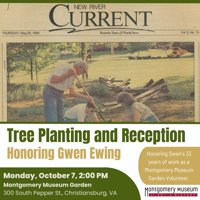 The Montgomery Museum of Art & History presents a Tree Planting and Reception Honoring Gwen Ewing on Monday, October 7, 2024 at the Montgomery Museum of Art & History Gardens.