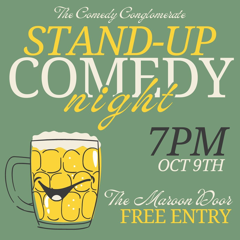 The Maroon Door presents a Free Stand-Up Comedy Night with The Comedy Conglomerate on Wednesday, October 9, 2024.