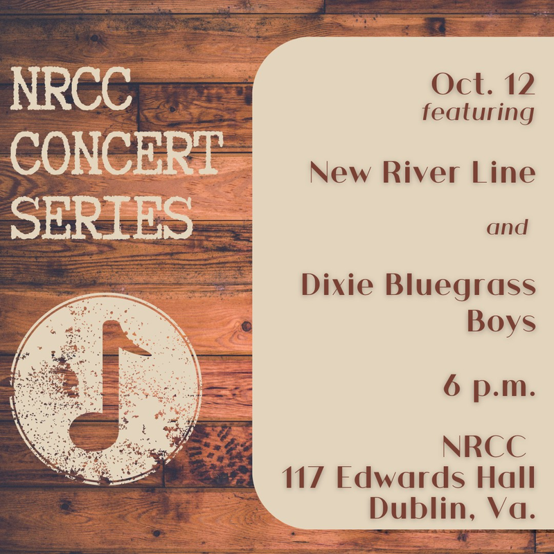 New River Community College's Concert Series presents a Free Music Concert with New River Line and the Dixie Bluegrass Boys on Saturday, October 12, 2024 inside 117 Edwards Hall located on the New River Community College campus in Dublin, VA.