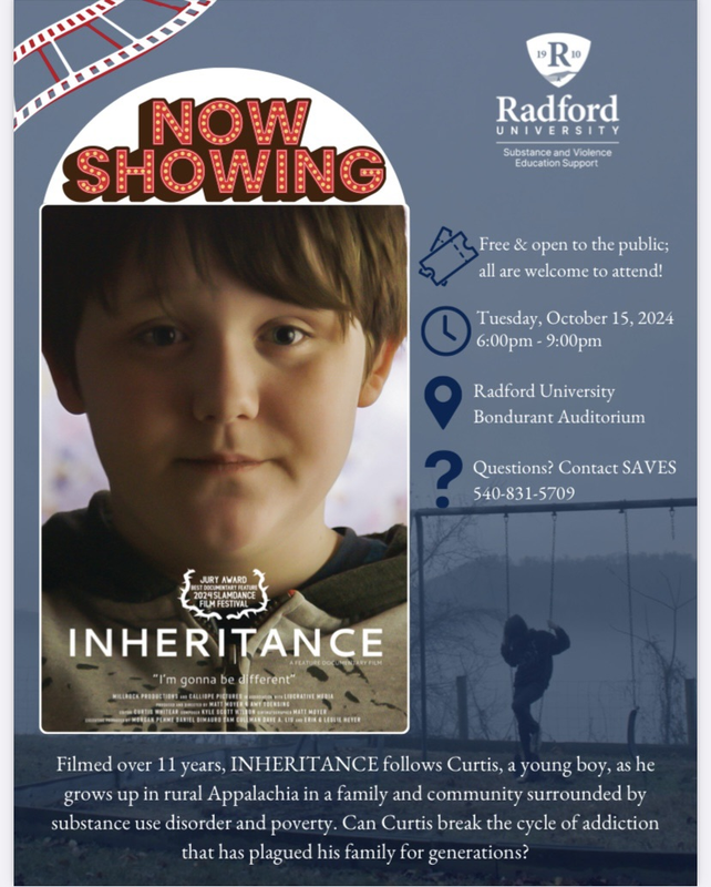 Join "Inheritance" Director Matt Moyer and Film Participant Curtis for a screening and Q&A at Radford University!