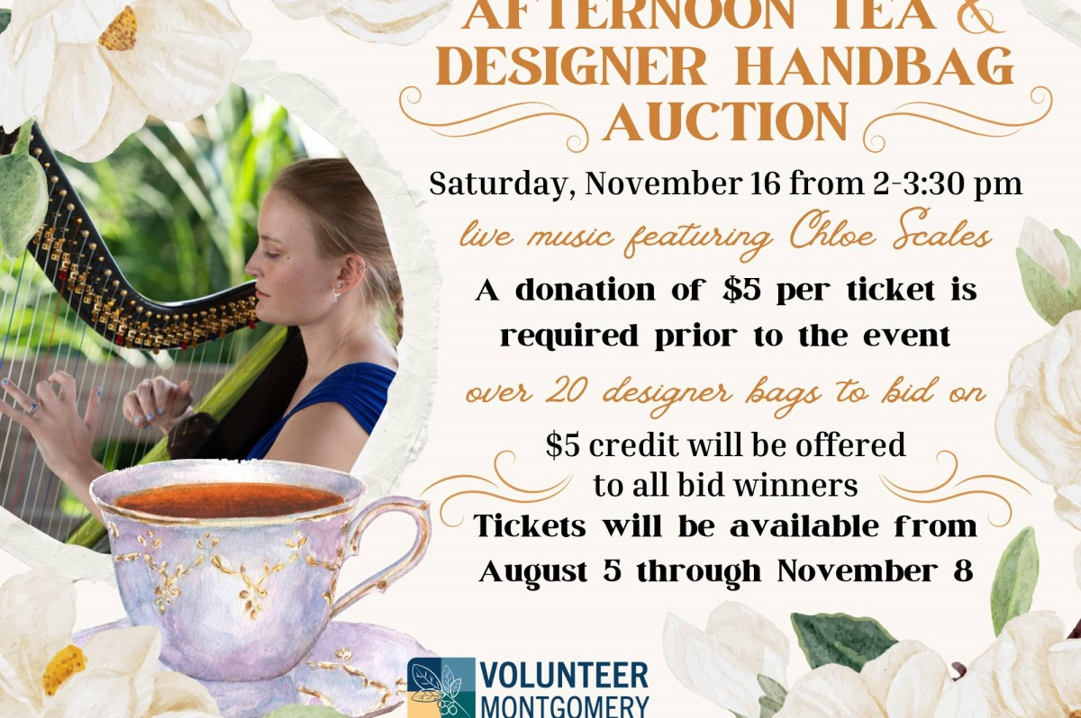 Volunteer Montgomery presents the Afternoon Tea and Designer Handbag Auction on Saturday, November 16, 2024.