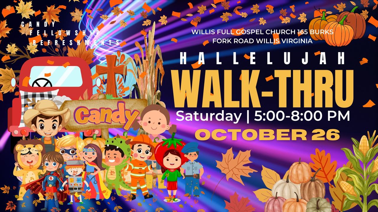Willis Full Gospel Church presents their 2024 Hallelujah Walk-Thru Event on Saturday, October 26, 2024.