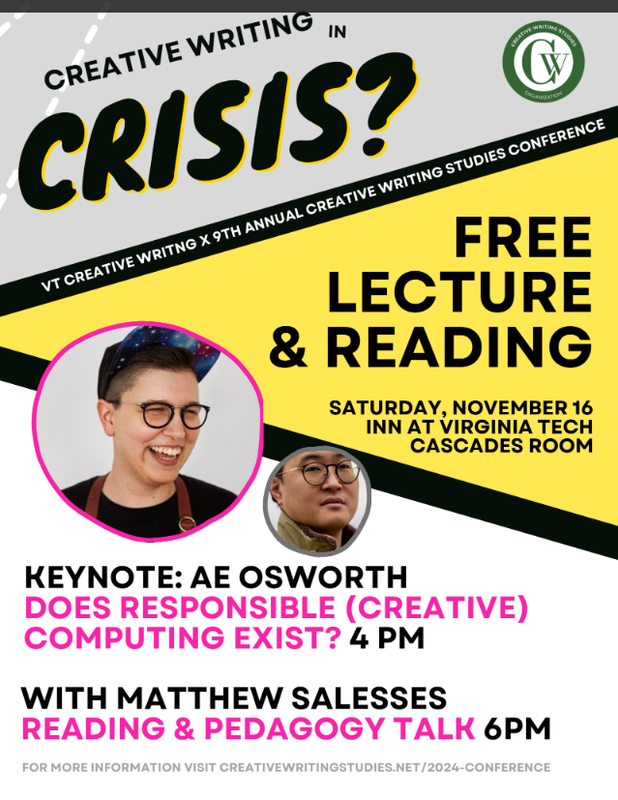 2024 Creative Writing Studies Conference: AE Osworth & Matthew Salesses Literary Talk and Reading