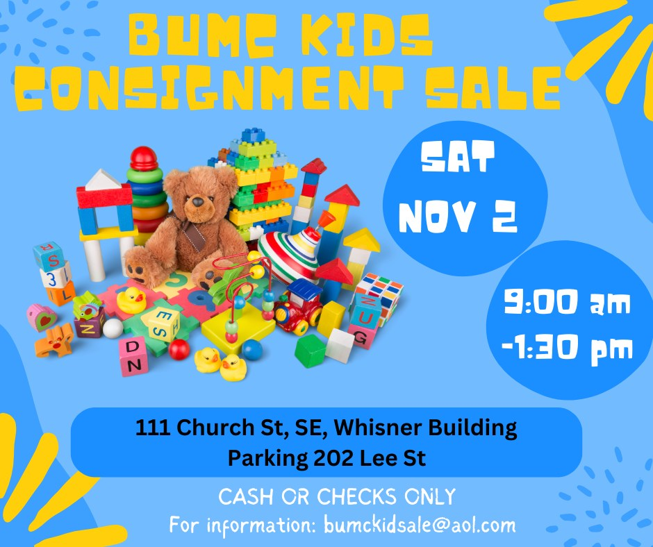 Blacksburg United Methodist Church hosts their Fall 2024 Children’s Consignment Sale on Saturday, November 2, 2024.