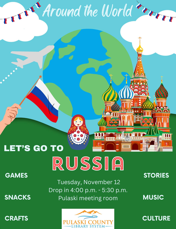 The Pulaski County Library continues their Around the World series featuring Russia on Tuesday, November 12, 2024 in the Pulaski meeting room.