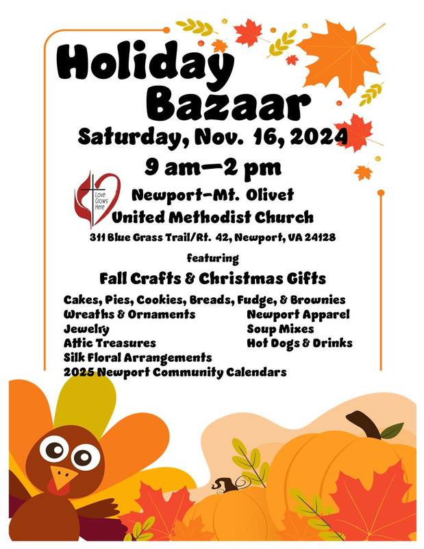 Newport-Mt. Olivet United Methodist Church presents their Annual Holiday Bazaar on Saturday, November 16, 2024.