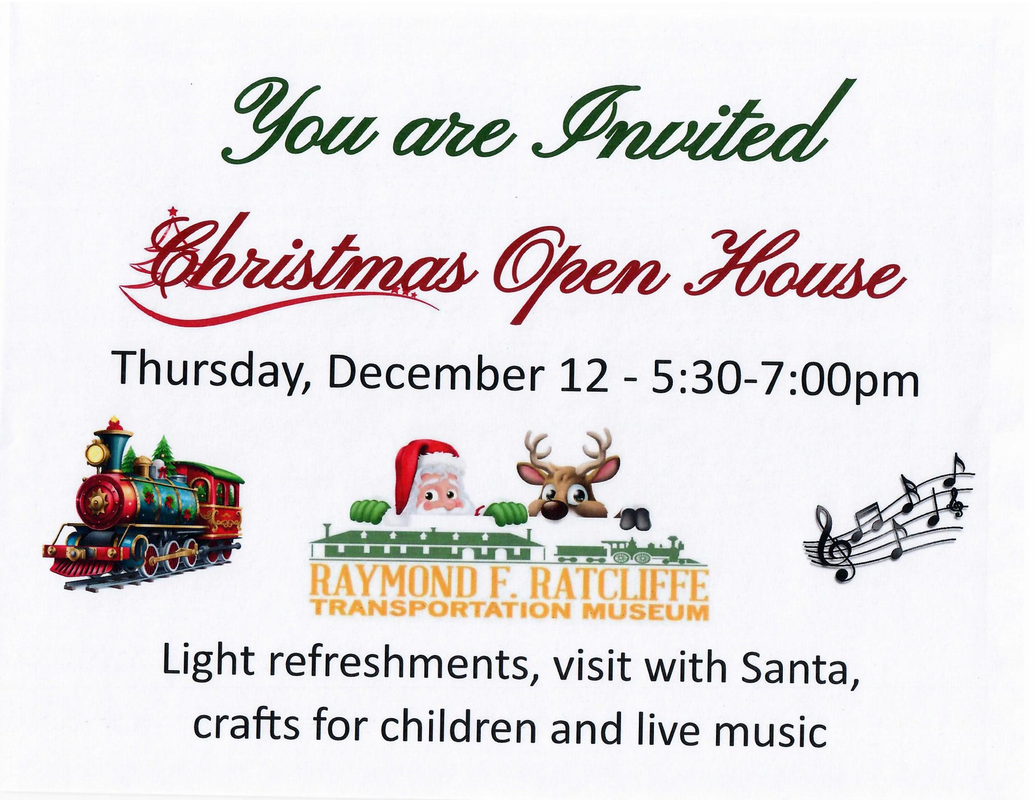 The Raymond F. Ratcliffe Memorial Transportation Museum presents their Annual Holiday Open House at Ratcliffe Museum on Thursday, December 12, 2024.