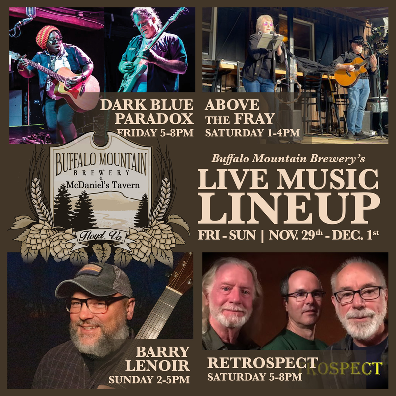 https://www.instagram.com/barrylenoirmusic/Buffalo Mountain Brewery is located at 332 Webbs Mill Road in Floyd, VA.
