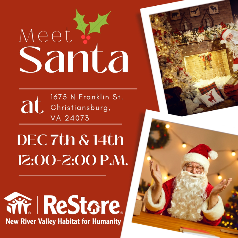 Habitat for Humanity ReStore presents a Meet Santa event on Saturday, December 7, 2024 and Saturday, December 14, 2024 from 12:00-2:00 PM.