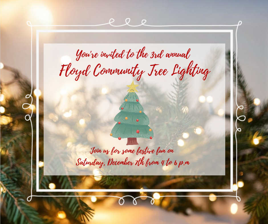 The Town of Floyd presents the 3rd Annual Floyd Community Tree Lighting on Saturday, December 7, 2024 at Warren G. Lineberry Memorial Park.