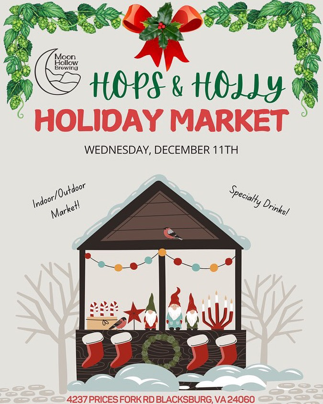 Moon Hollow Brewing presents the Hops & Holly Holiday Market on Wednesday, December 11, 2024.
