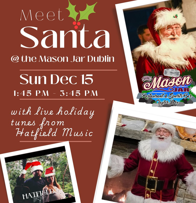 The Mason Jar at Claytor Lake presents a Meet Santa event with Live Music from Hatfield Music on Sunday, December 15, 2024.
