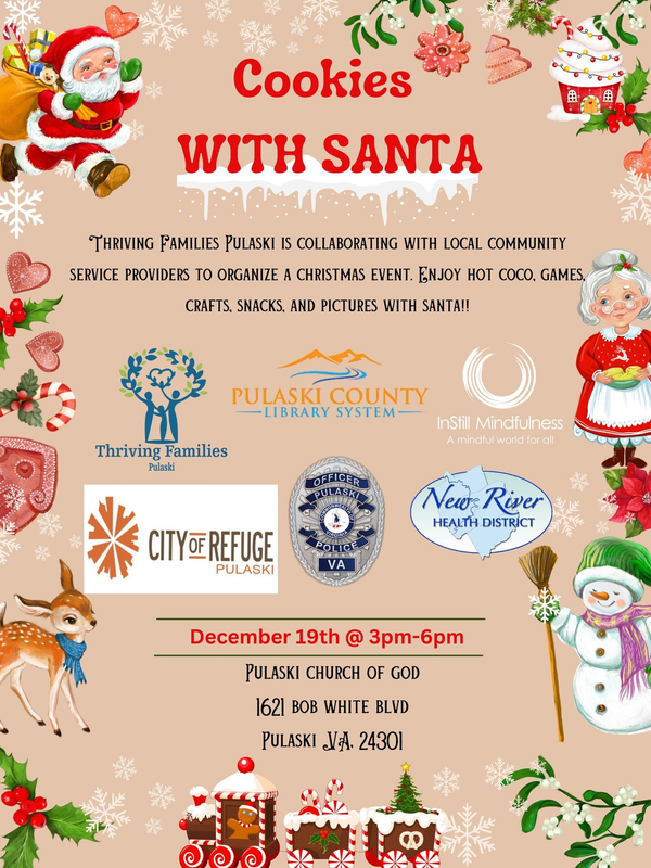 Thriving Families Pulaski presents Cookies with Santa on Thursday, December 19, 2024 at Pulaski Church of God.