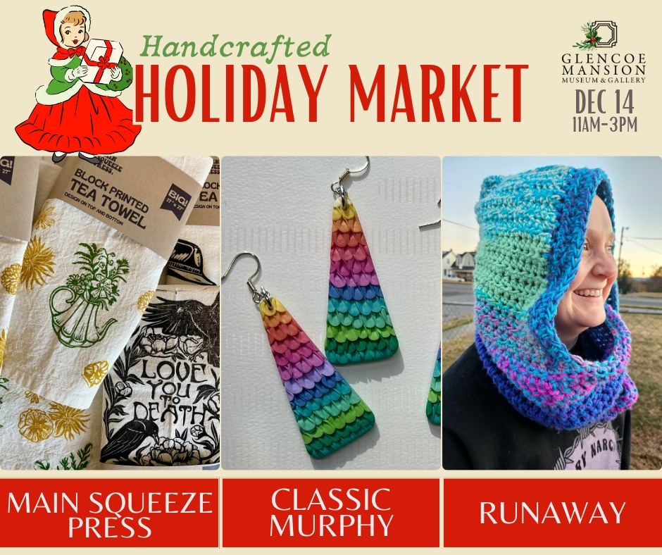 The Glencoe Mansion, Museum & Gallery presents the 2024 Handcrafted Holiday Market on Saturday, December 14, 2024.