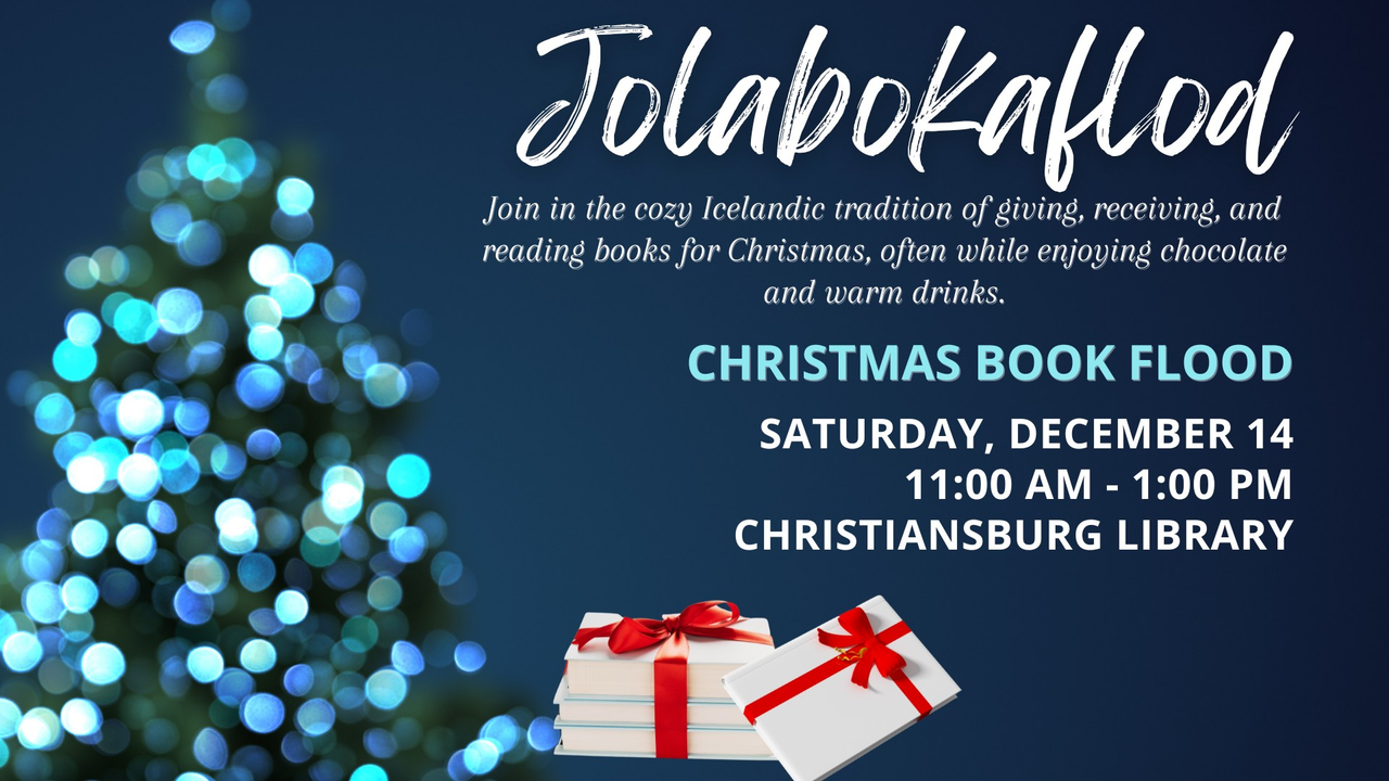 The Christiansburg Library presents "Jolabokaflod: Christmas Book Flood" on Saturday, December 14, 2024.