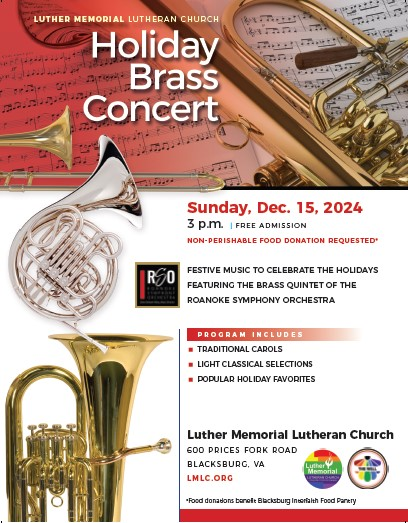 Luther Memorial Lutheran Church presents Holiday Brass Concert from the Roanoke Symphony Orchestra on Sunday, December 15, 2024.