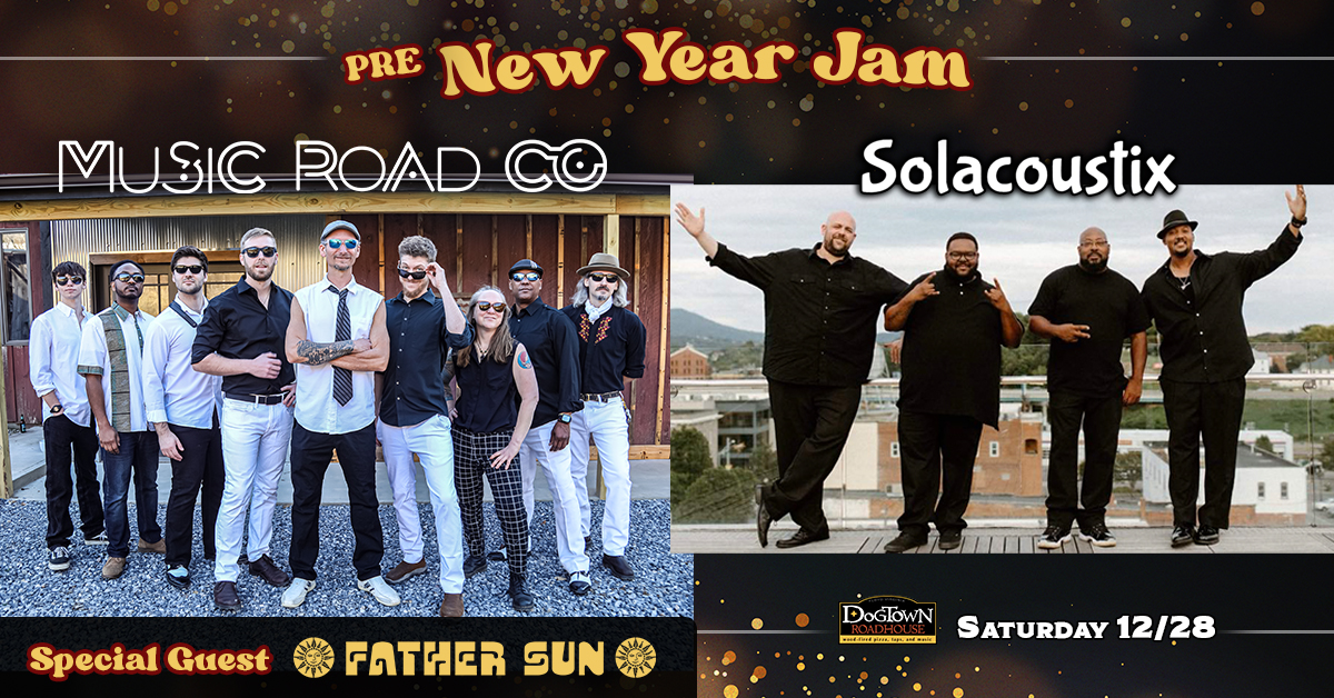 Dogtown Roadhouse presents Pre New Year Jam with Music Road Co, Father Sun and Solacoustix on Saturday, December 28, 2024.