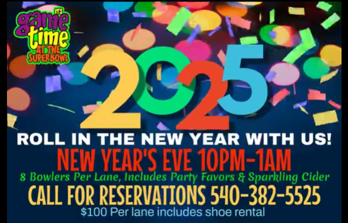 NRV Superbowl presents 2025 New Year's Eve Celebration on Tuesday, December 31, 2024.