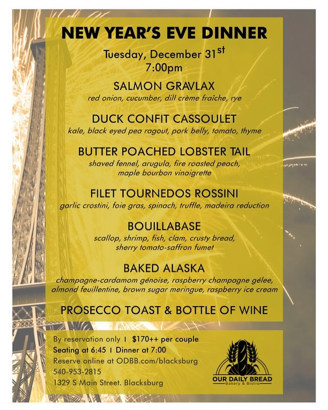Our Daily Bread Bakery & Bistro presents their 2025 New Year's Eve Dinner on Tuesday, December 31, 2024.
