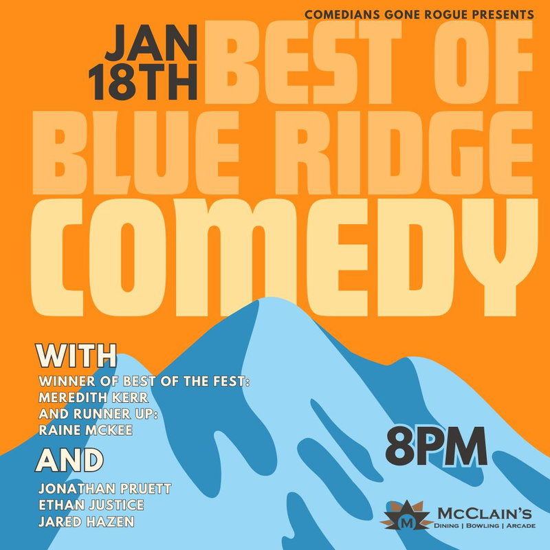 Comedians Gone Rogue and McClain's at First & Main presents a Stand-Up Comedy Night with Best of Blue Ridge Comedy on Saturday, January 18, 2025.