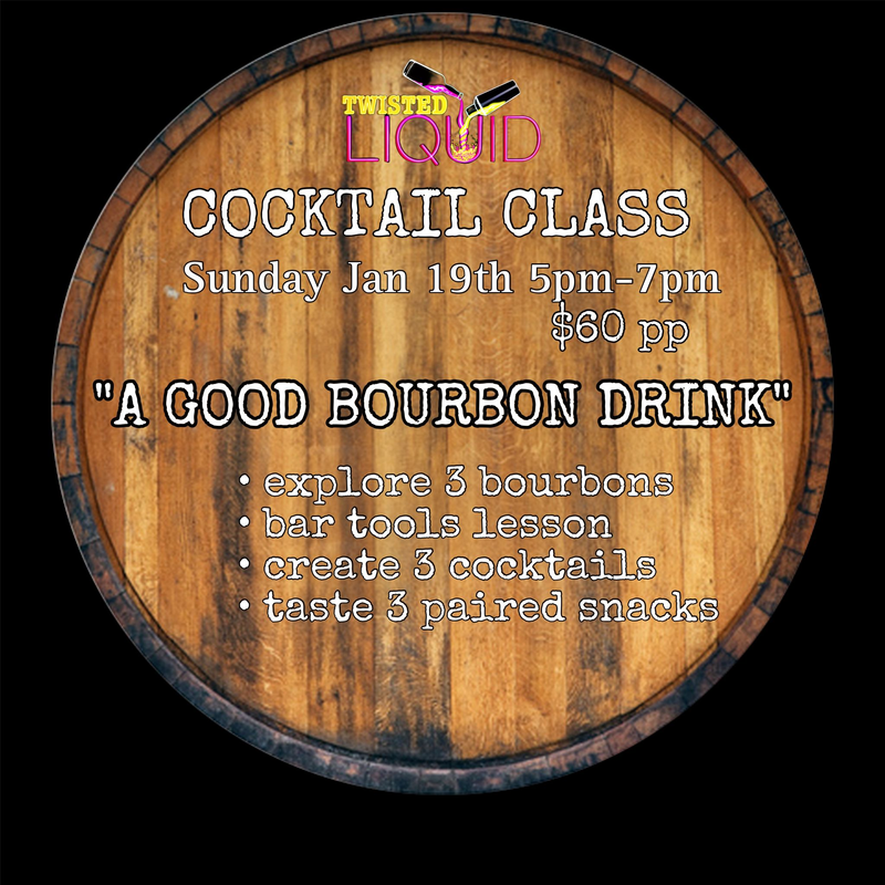 Twisted Liquid Blacksburg presents a Cocktail Class titled "A Good Bourbon Drink" on Sunday, January 19, 2025.