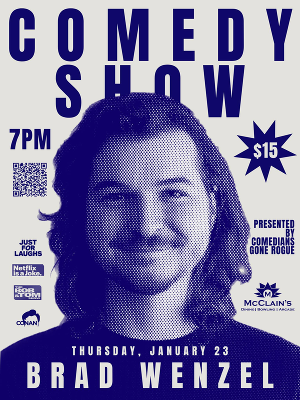 Comedians Gone Rogue and McClain's at First & Main presents a Stand-Up Comedy Night with Brad Wenzel on Thursday, January 23, 2025 in the banquet room.