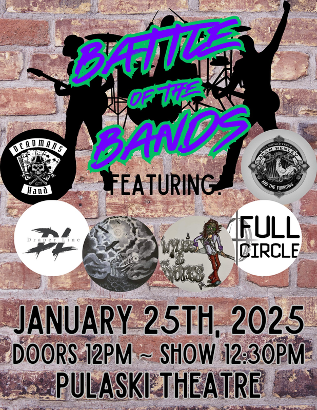 The Pulaski Theatre presents a Battle of the Bands on Saturday, January 25, 2025.