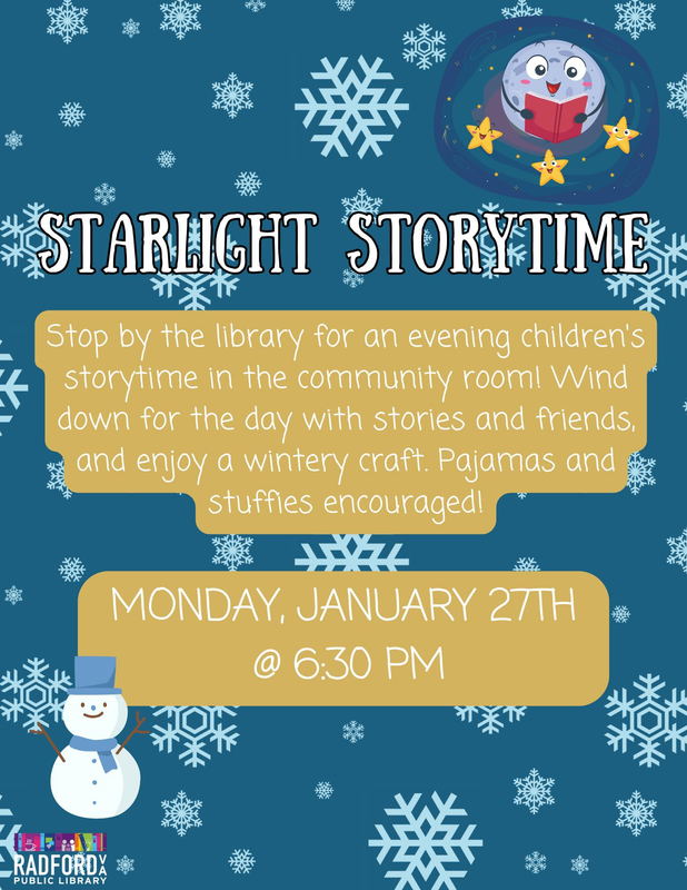 The Radford Public Library presents Winter Starlight Storytime and Craft on Monday, January 27, 2025.