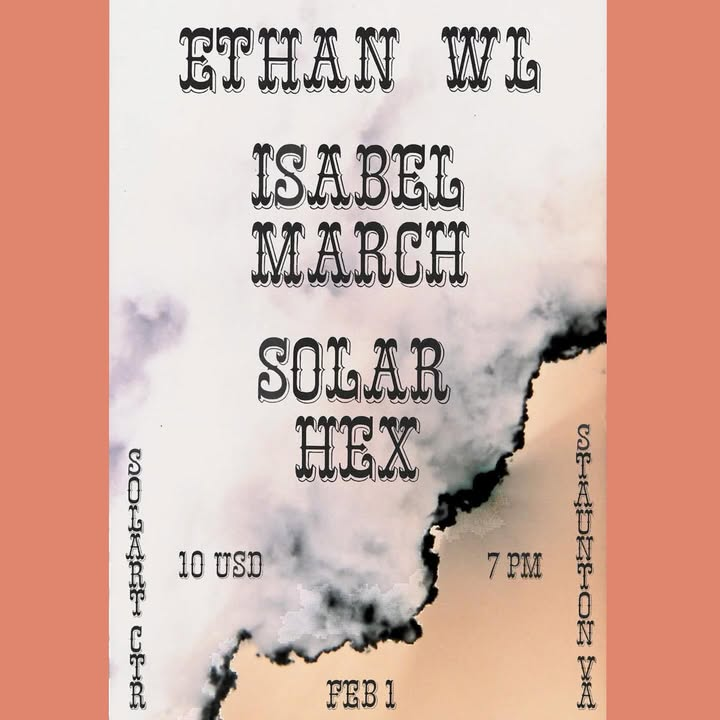 American Primitive Guitarist Ethan WL will be joining us on tour from New England, supported by locals Kaily Schenker and Mike Gangloff, as well as a new project from Liam Weikart called This Murky Realm.