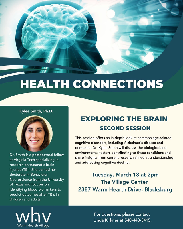 Warm Hearth Village continues their Health Connections series "Exploring the Brain" on Tuesday, March 18, 2025 inside the Warm Hearth Village Center.