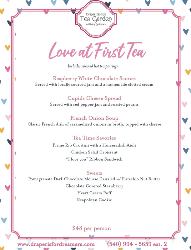 Draper Mercantile and Trading Company presents Love at First Tea at Draper Blooms Tea Garden on Friday, February 14, 2025 and Saturday, February 15, 2025.
